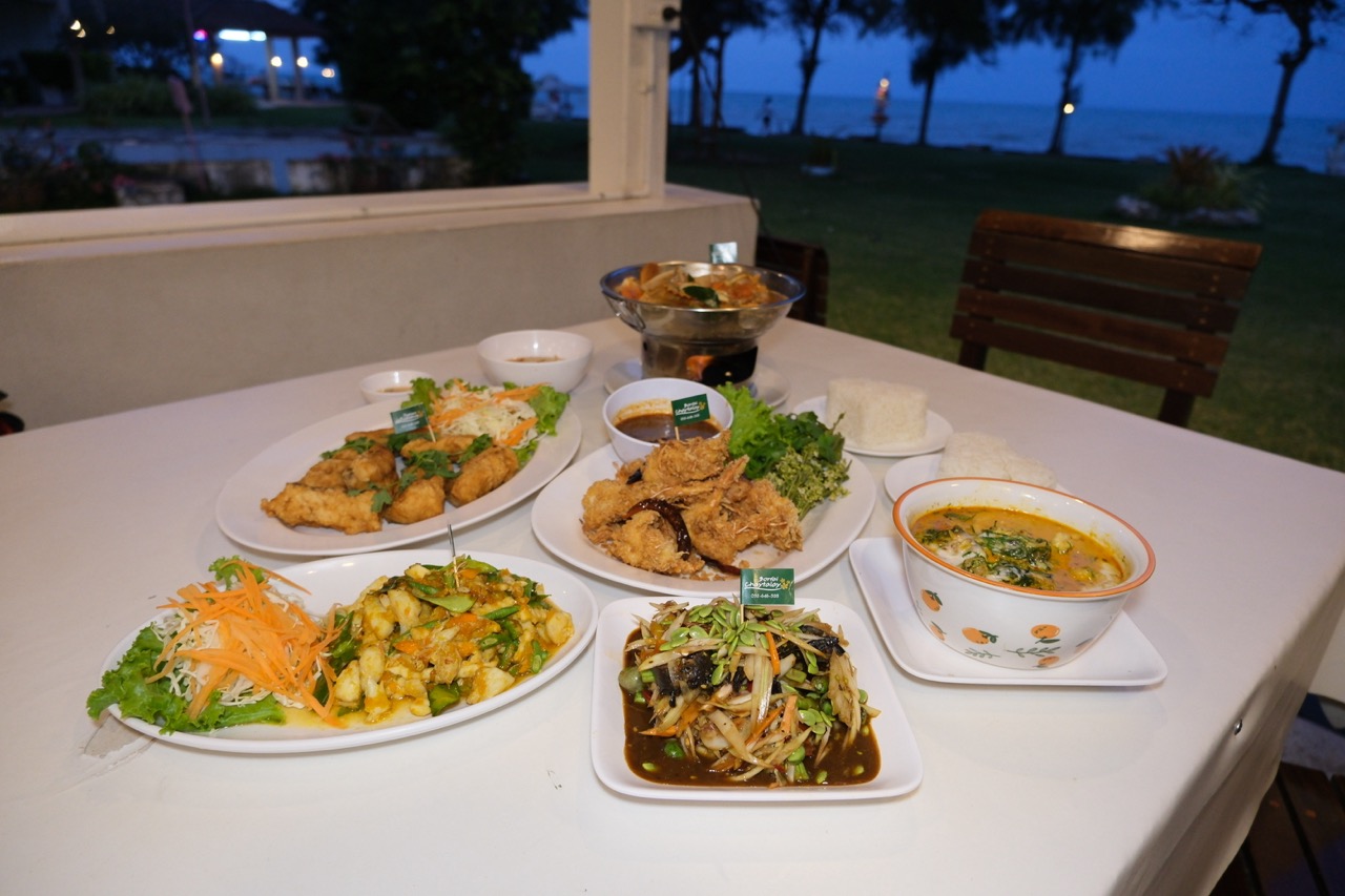 ร้านอาหารใกล้ฉันหัวหิน จ.ประจวบคีรีขันธ์ ติดริมทะเล มีที่พัก โรงแรม บ้านพักเป็นหลัง อาคารที่พักสวัสดิการ ทอ.(บ่อฝ้าย)